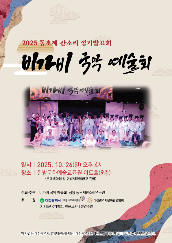 비가비 국악 예술회 (대표 정왕 손영준)가.2025 년 10월 26일 4시 한밭 문화예술 교육원에서 정기 발표회를 가졌다.